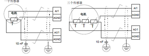 2.通過模擬量輸出端/輸入、電機(jī)內(nèi)部溫度傳感器件,檢測電機(jī)溫度