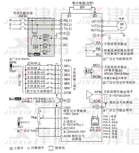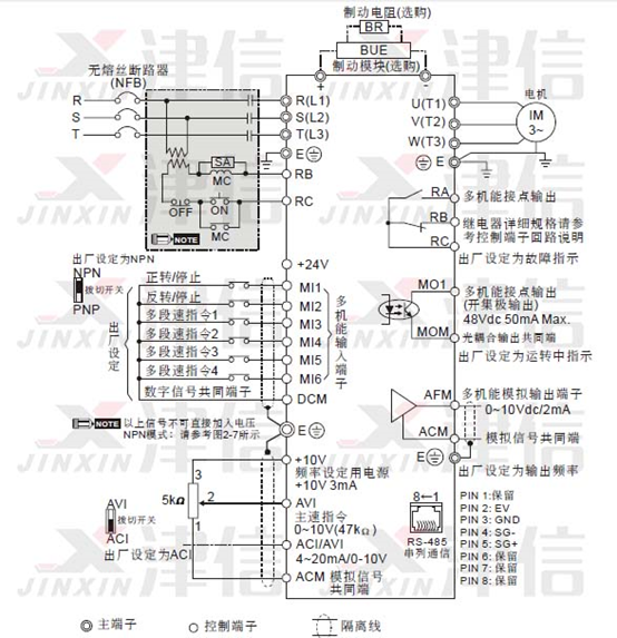 - 主回路配線與控制回路的配線必需隔離,以防止發生誤操作。