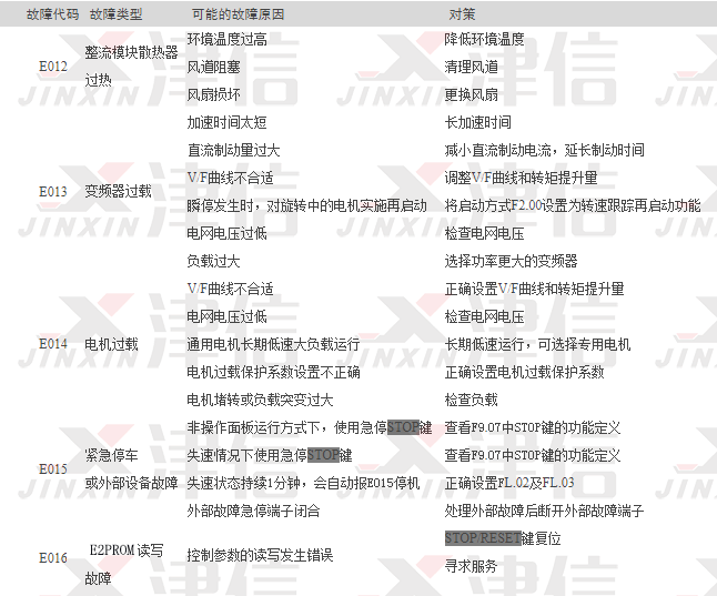 故障代碼E012-E016